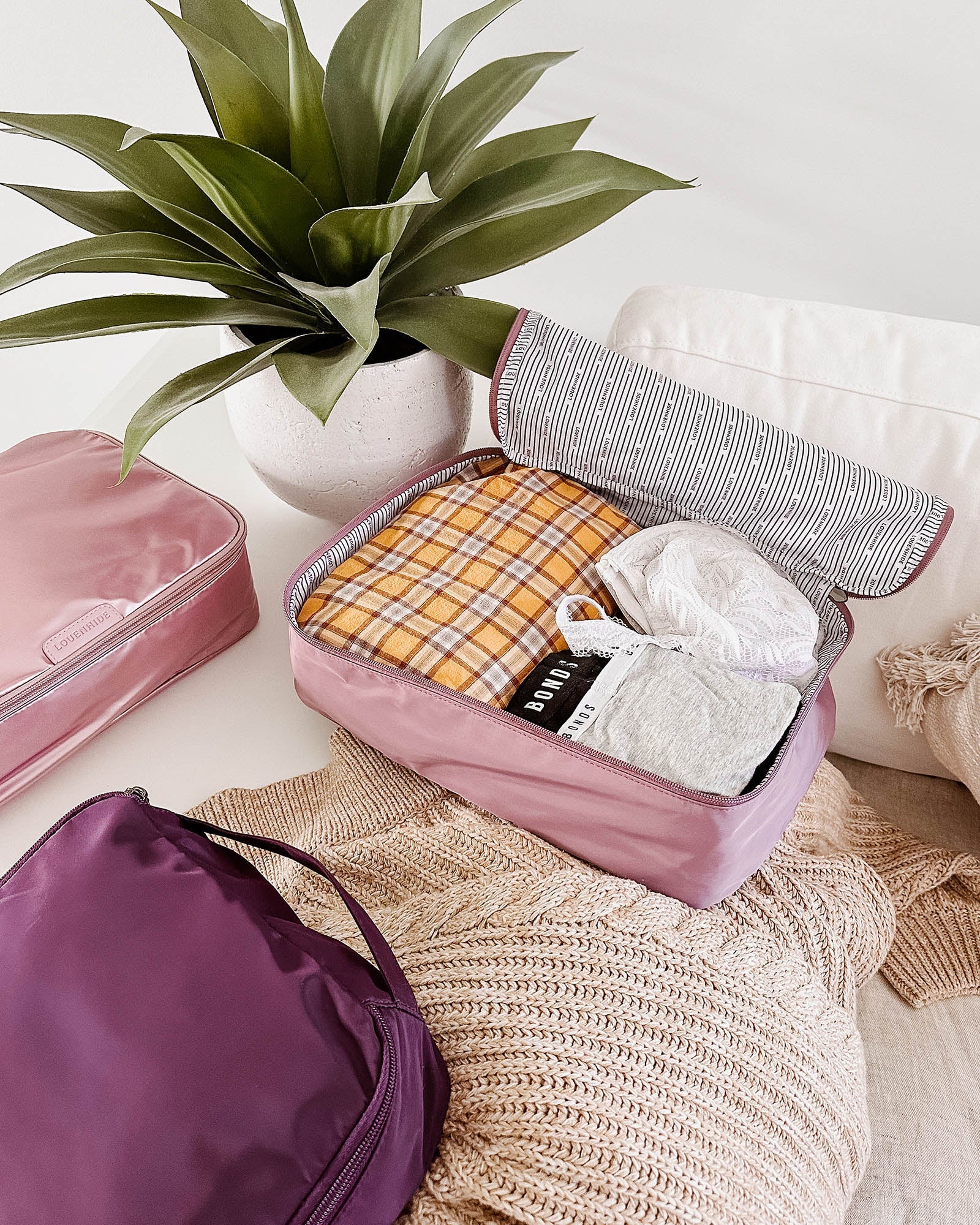 The Louenhide Madras Multi Pink 3 Piece Packing Cube Set will transform the way you travel. Maximise space and minimise bulk with the three varied sizes in three complementary winter hues. Use the smaller cube for your personal items, the medium for lighter pieces and the largest cube for your chunky knit sweaters and jeans. This set adapts to your packing style, ensuring a place for everything. Crafted from a lightweight satin material, these packing cubes won't add any unnecessary weight to your luggage. From simplifying the packing process to creating a stress-free travel experience, the Madras Multi Pink 3 Piece Packing Cube Set is your answer to efficient and stylish travel organisation.