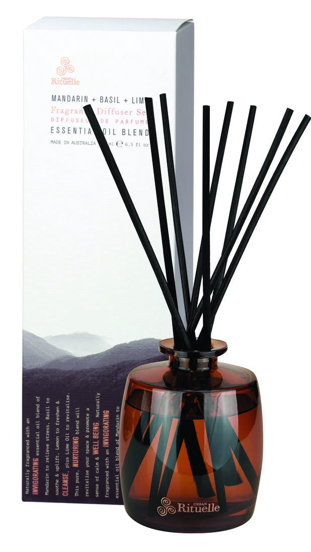 Capturing a crisp, uplifting blend of mandarin, basil & lime, this long lasting fragrance diffuser set will gently whisper its soothing scents to revitalise your home while calming your heart & mind. Proudly Australian made, this premium fragrance blend will effortlessly & safely radiate from the natural fibre reeds transforming your home into your very own therapeutic retreat.
