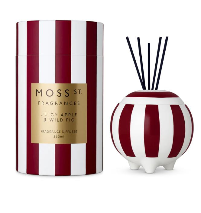 Hand-poured, custom-designed ceramic diffuser that fills any space with a ripe and vibrant blend of Juicy Apple & Wild Fig. Featuring bold stripes and luxe foiling, these ceramics are designed to be re-used long after the diffuser is finished.