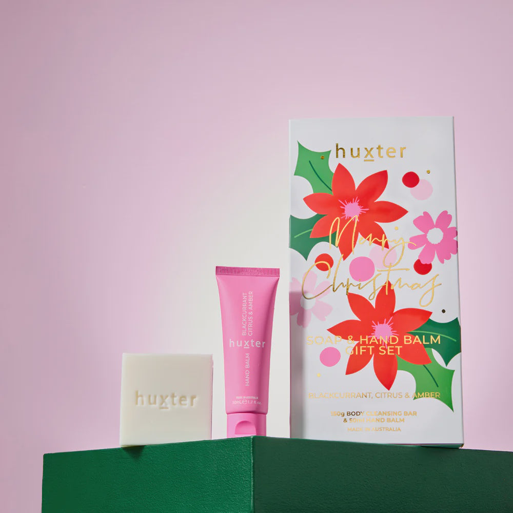 Unwrap a festive little treasure designed to pamper from head to toe. This Christmas gift set holds two everyday luxuries – a rich, fast-absorbing hand balm and a creamy triple-milled cleansing bar – both infused with the joyful scent of blackcurrant, citrus, jasmine, and warm amber.