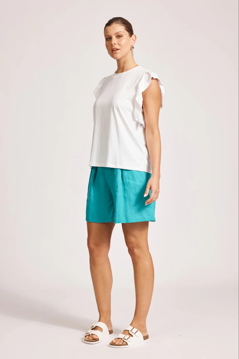 A simple yet feminine summer essential. Crafted from 100% cotton for softness and breathability. Features a classic tank silhouette with delicate frill detail at the sleeves and subtle brand detail at the back neck.