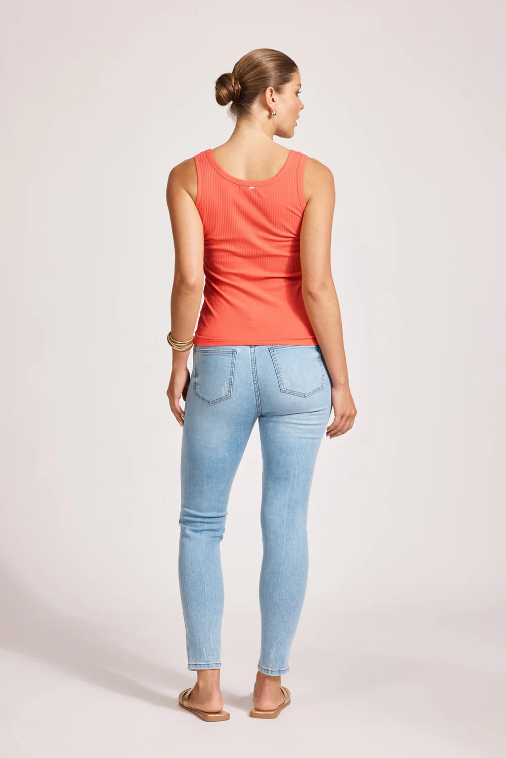 An essential summer staple. Crafted from cotton-rich ribbed fabric for comfort and stretch. Features a scoop neckline, sleeveless design, and small brand detail at the back neck.