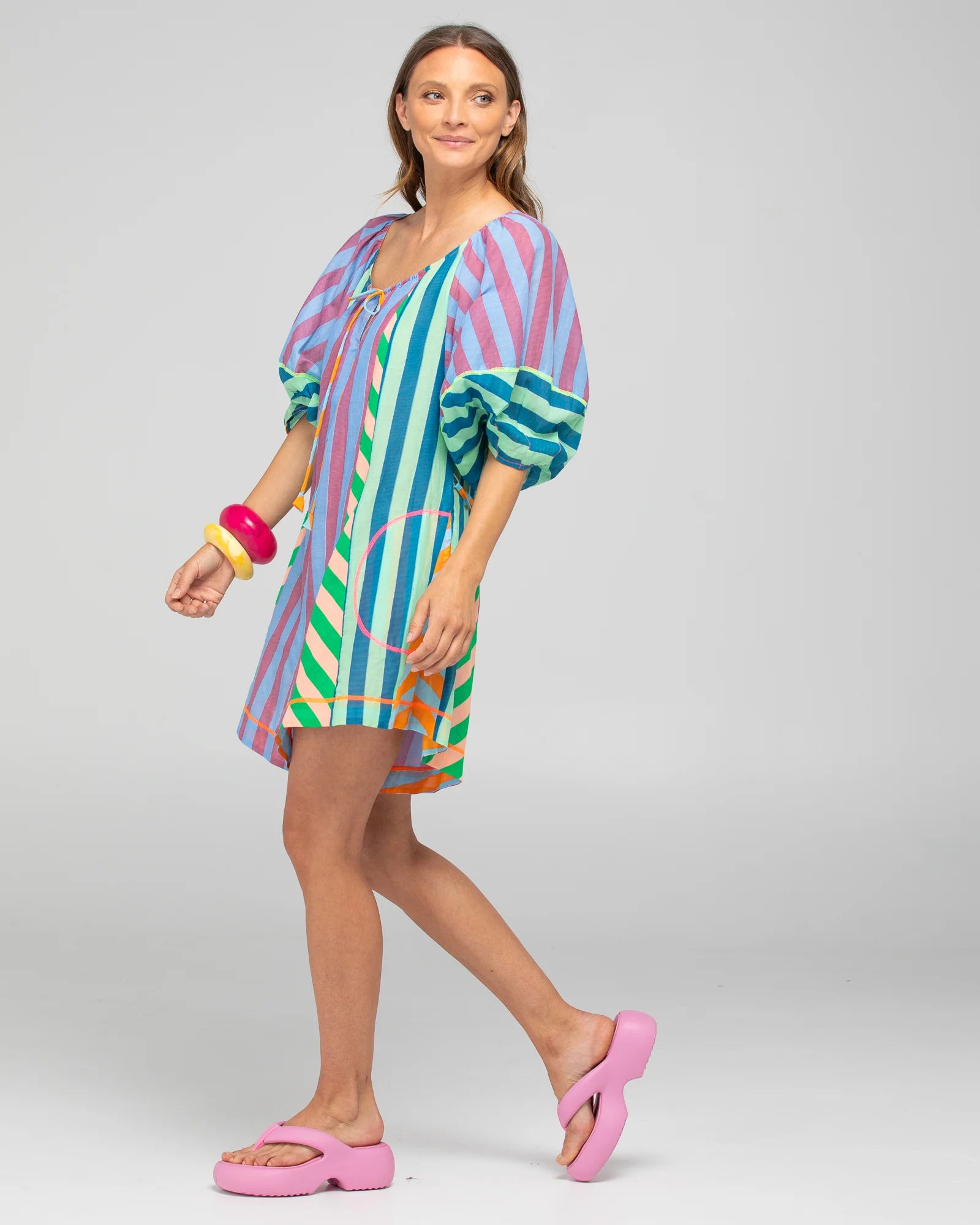 The Boom Shankar Lucia Playsuit is crafted from 100% cotton in our signature spliced stripes with contrast neon stitching. It's a must-have for colour-lovers this summer.