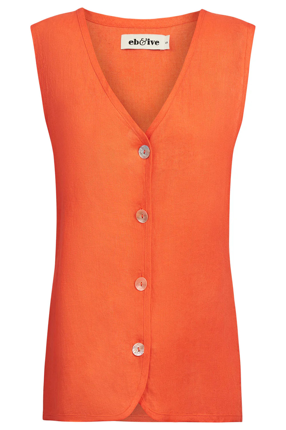 A relaxed essential with tailored flair. Crafted from 100% linen for breathable style. Features front button closures, curved hemline, and a D-ring puller at the back for a custom flattering fit at the waist.