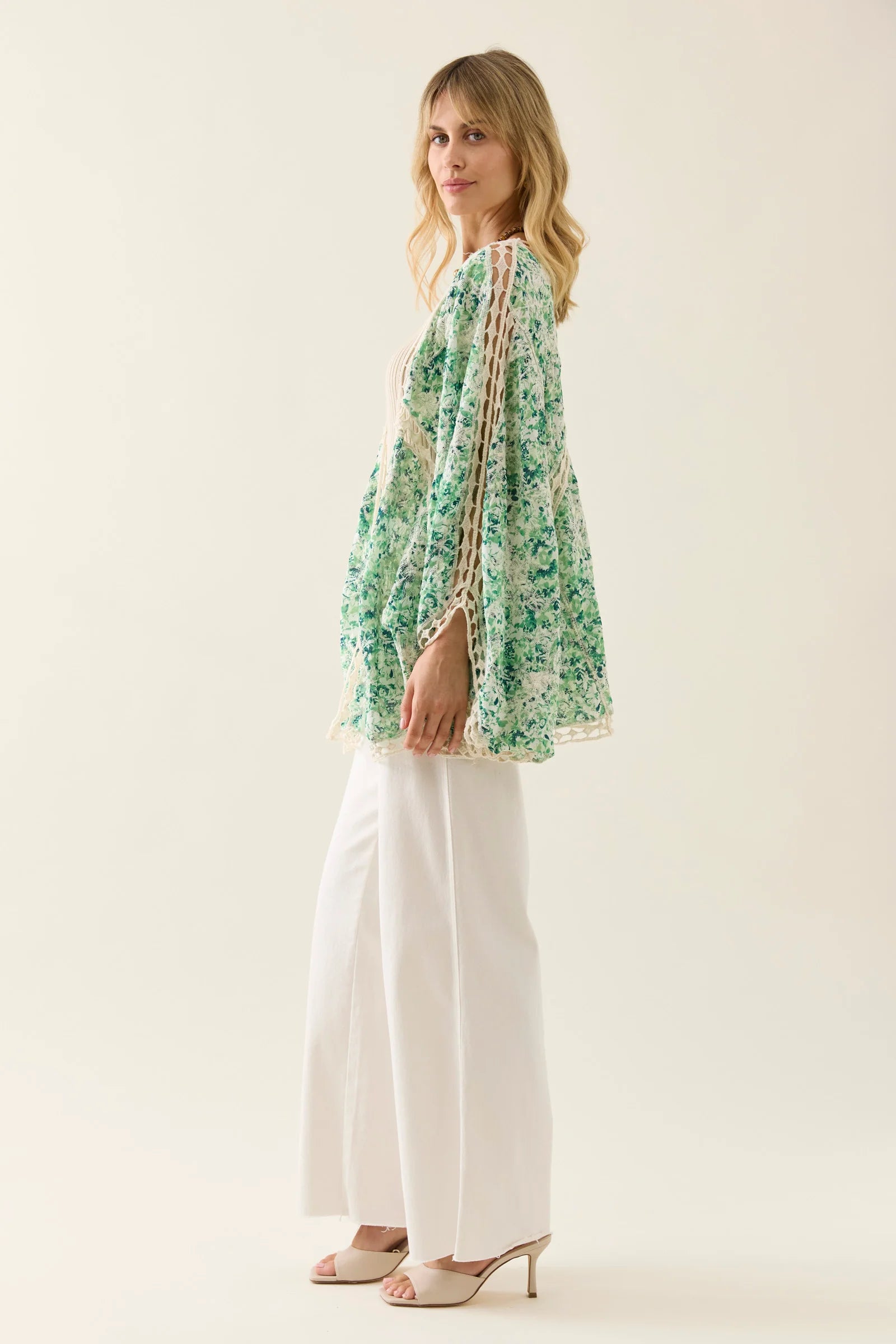 A beautiful lightweight layer, the Oline Lace Cape features the exclusive Jasmine floral embroidery and delicate cut-out lacework. Crafted from 100% cotton, it's a standout piece for summer styling.