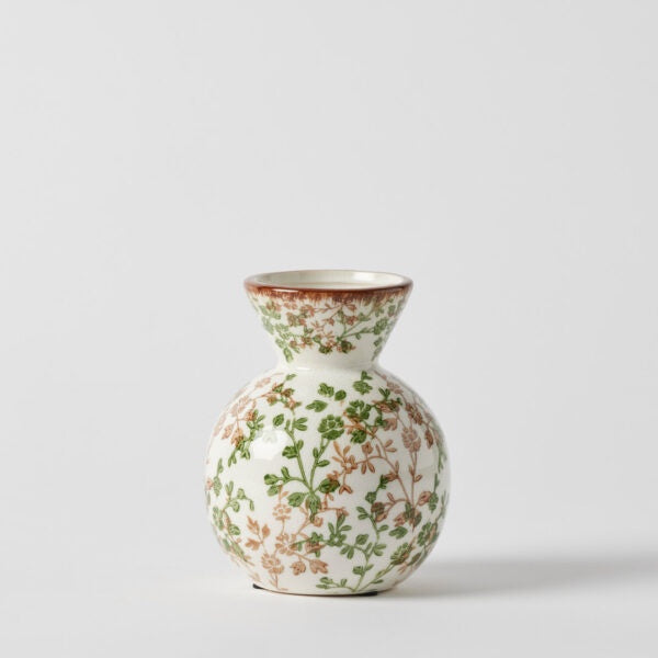 Bring understated botanical elegance to your décor range with the Wild Vine Squat Vase. This vintage-look vase features a delicate hand-painted floral vine motif and gentle crackle-glaze finish, making every single vase unique.