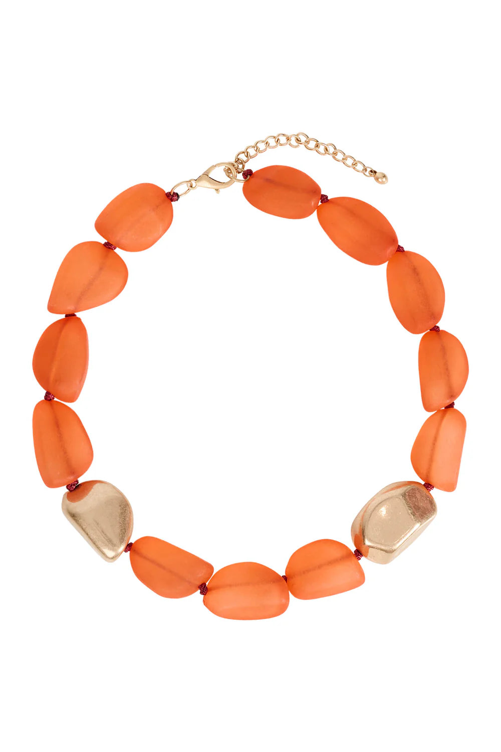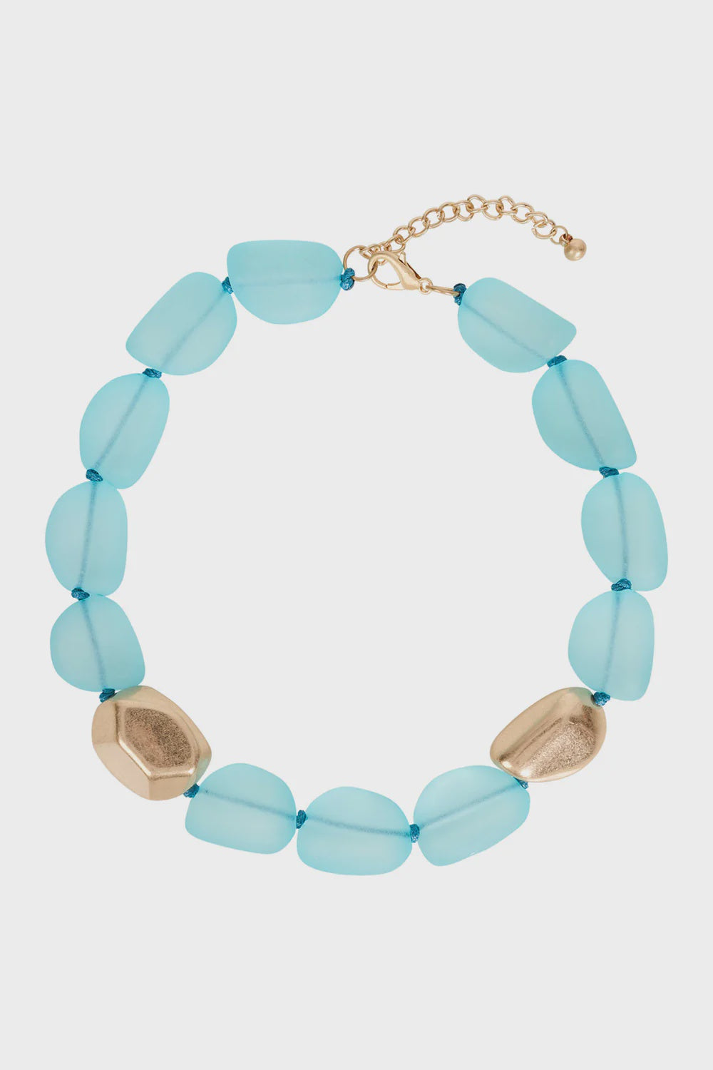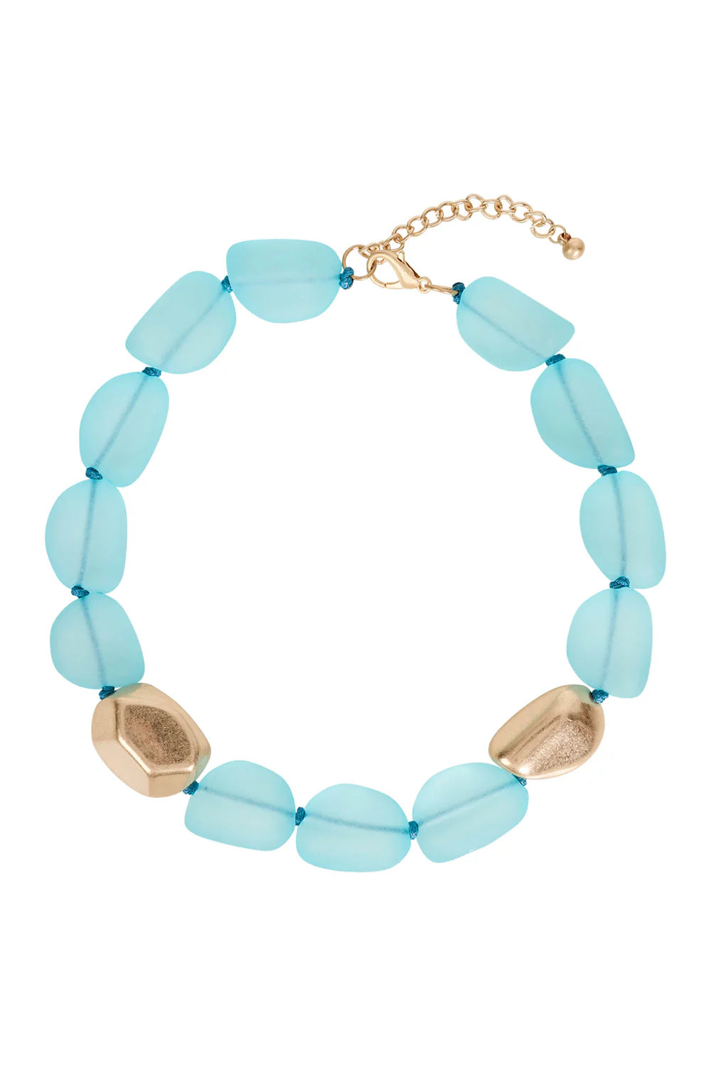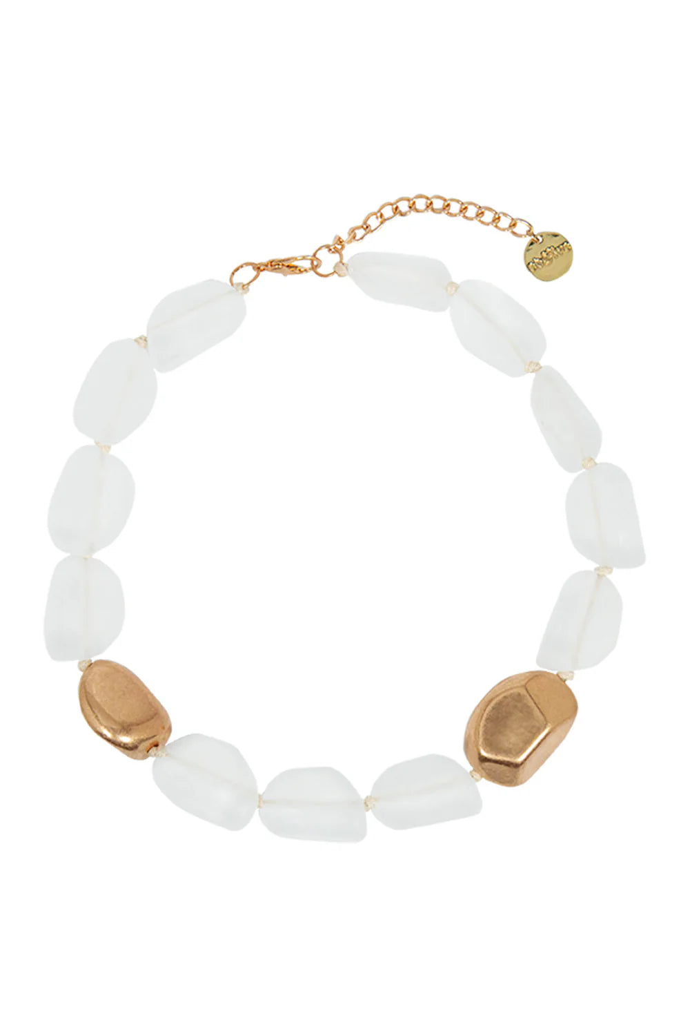 Short beaded necklace crafted from frosted resin beads with scattered gold-tone finish beads. Soft colour and texture for daily styling.