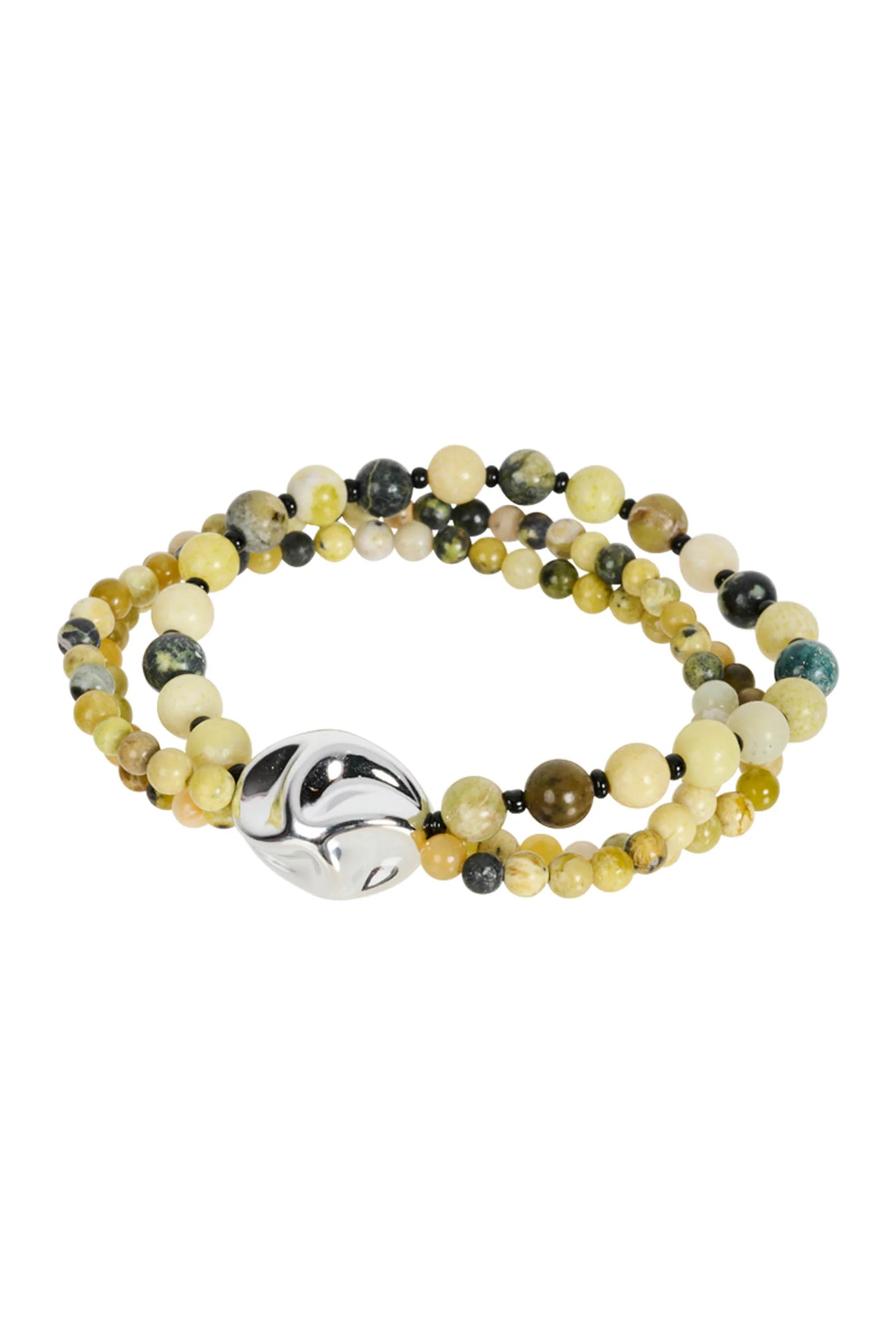 The Wilma Bracelet combines natural stone beads with a bold organic metal spacer. Worn solo or stacked, it adds effortless texture to your summer style.