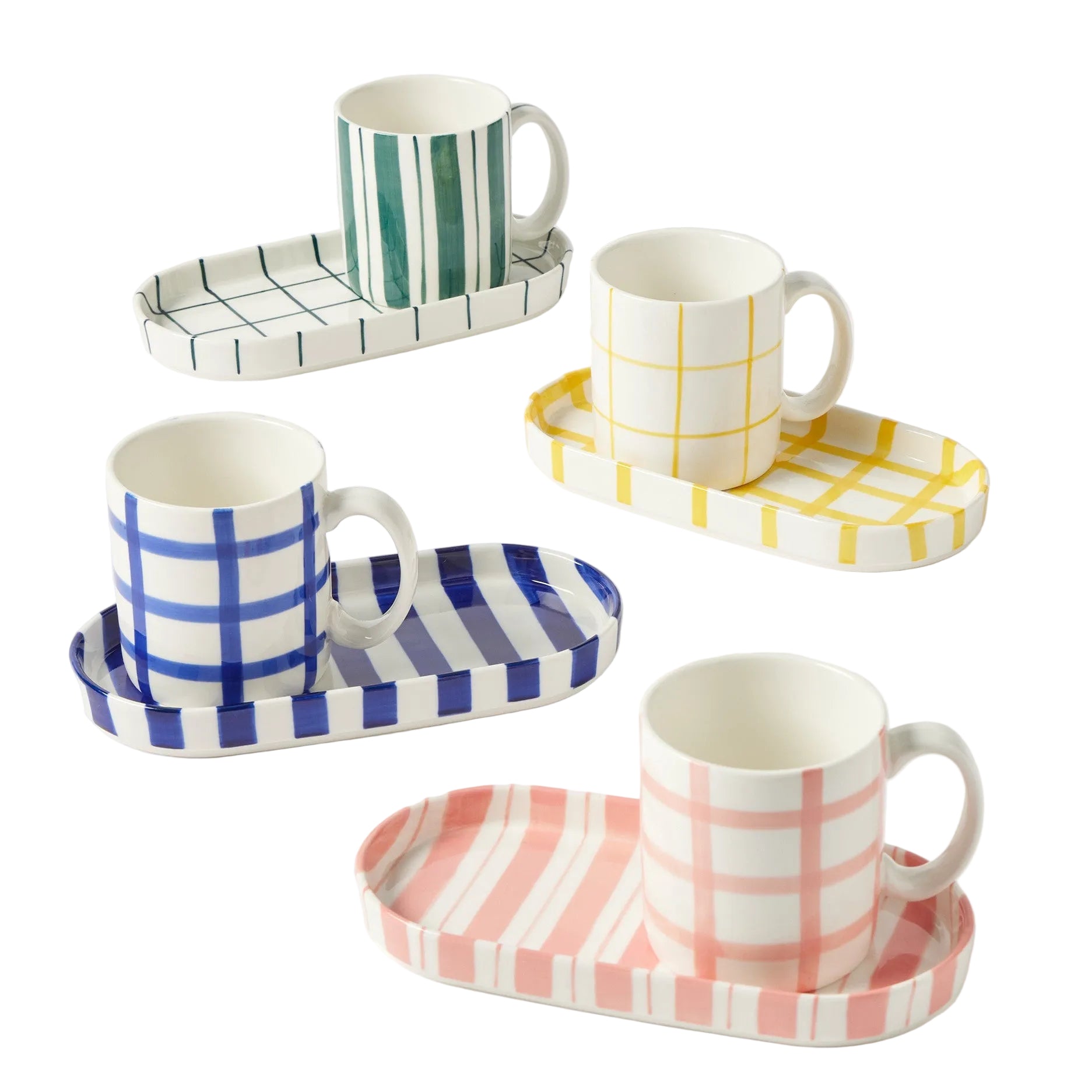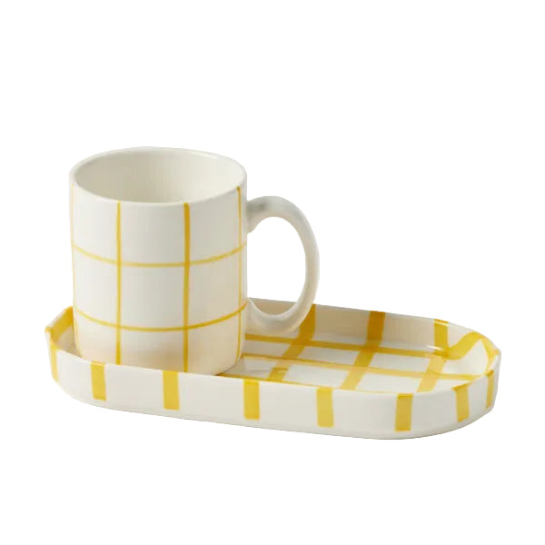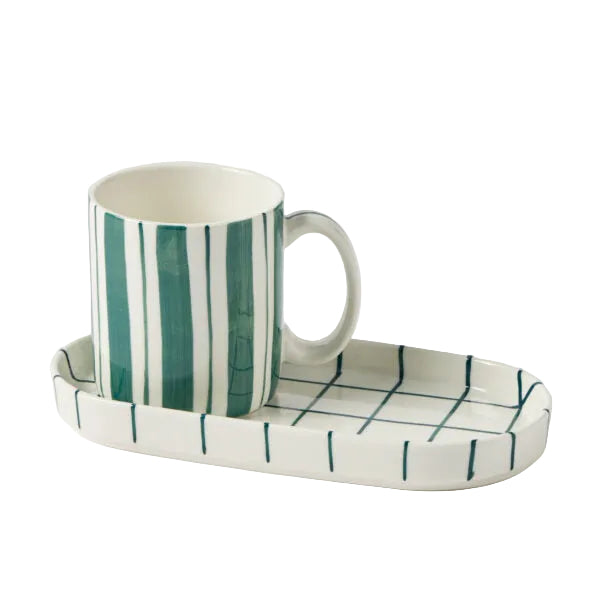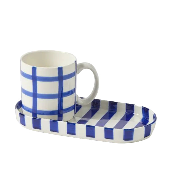 The Loft Breakfast Set adds a cool, coastal feel to morning rituals and gifting displays. Hand-painted, and crafted from New Bone China, this mug and striped tray blends functionality with a stylish and relaxed aesthetic. Using a soft modern silhouette, this Breakfast Set offers relaxed elegance for everyday use.