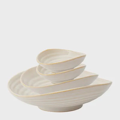Crafted with Ottawa’s gently ridged, signature shape, dimpled texture and slight speckle, this set of four tapas bowls showcases a blend of white and neutral tones. Made of stoneware, each piece features a reactive gloss glaze that displays a subtle translucency for a rustic feel. The elongated, oval shape offers unique high edges and nestle conveniently inside one another for easy storage. For that extra special touch, the set comes packaged in a beautifully patterned, floral gift box to make it the must-have gift of the season.