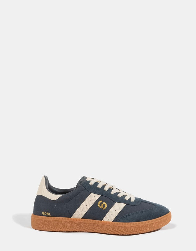 Add a little lift to your off-duty wardrobe with the Parallel Canvas Sneakers in Night Sky by Goodsole. Crafted in navy canvas with suede accents, these sneakers strike the perfect balance between statement and staple. The natural gum sole adds a sporty touch, while clever comfort-driven features make them an instant everyday essential. Whether you're running errands or airport-hopping, these are built to move with you, no fuss, no compromise.