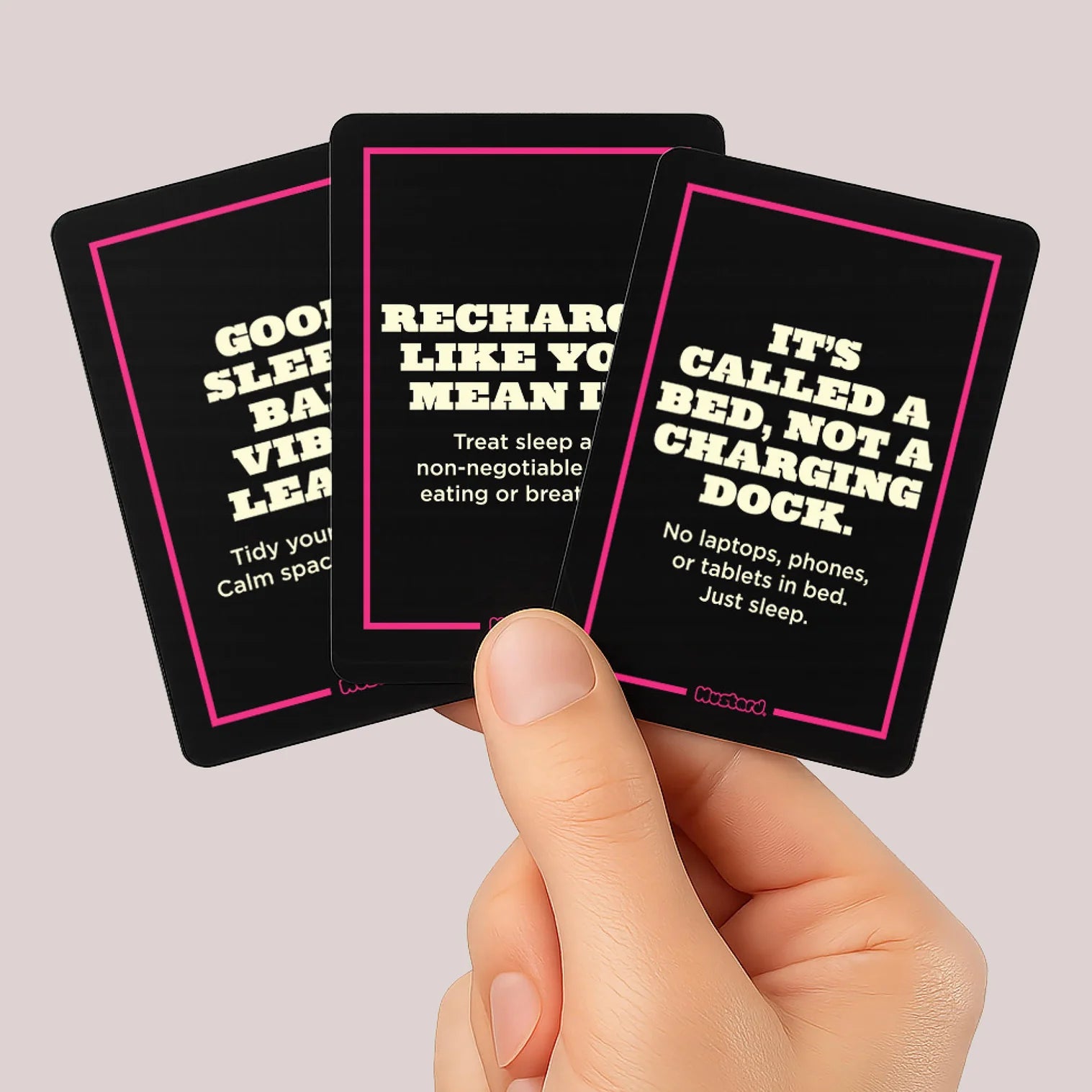 Each card offers practical tips, calming prompts, or just a gentle reminder to stop scrolling at 2:37am.