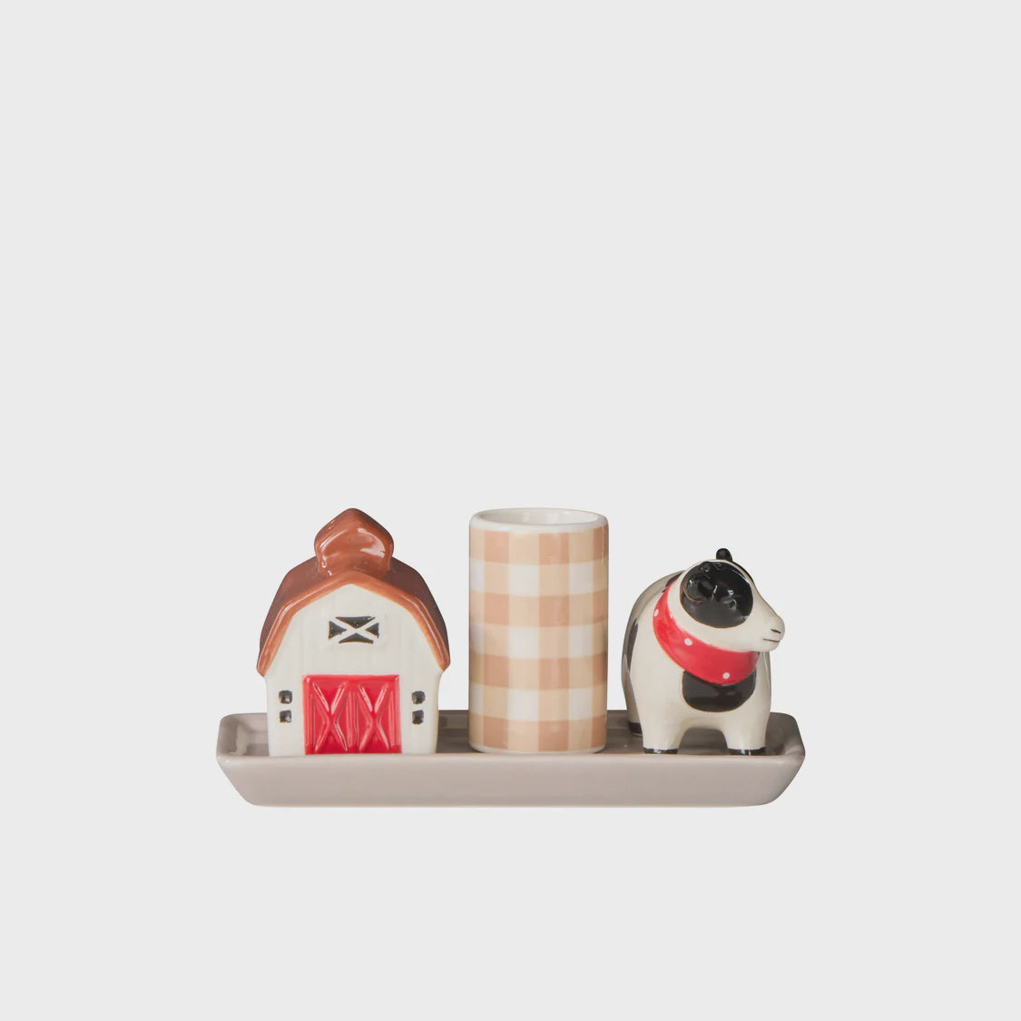 Bring that country charm to your kitchen with the Homestead Salt & Pepper Shaker Set by Davis & Waddell. Fill the cow up with salt and the house up with pepper whilst keeping your toothpicks in the gingham holder.