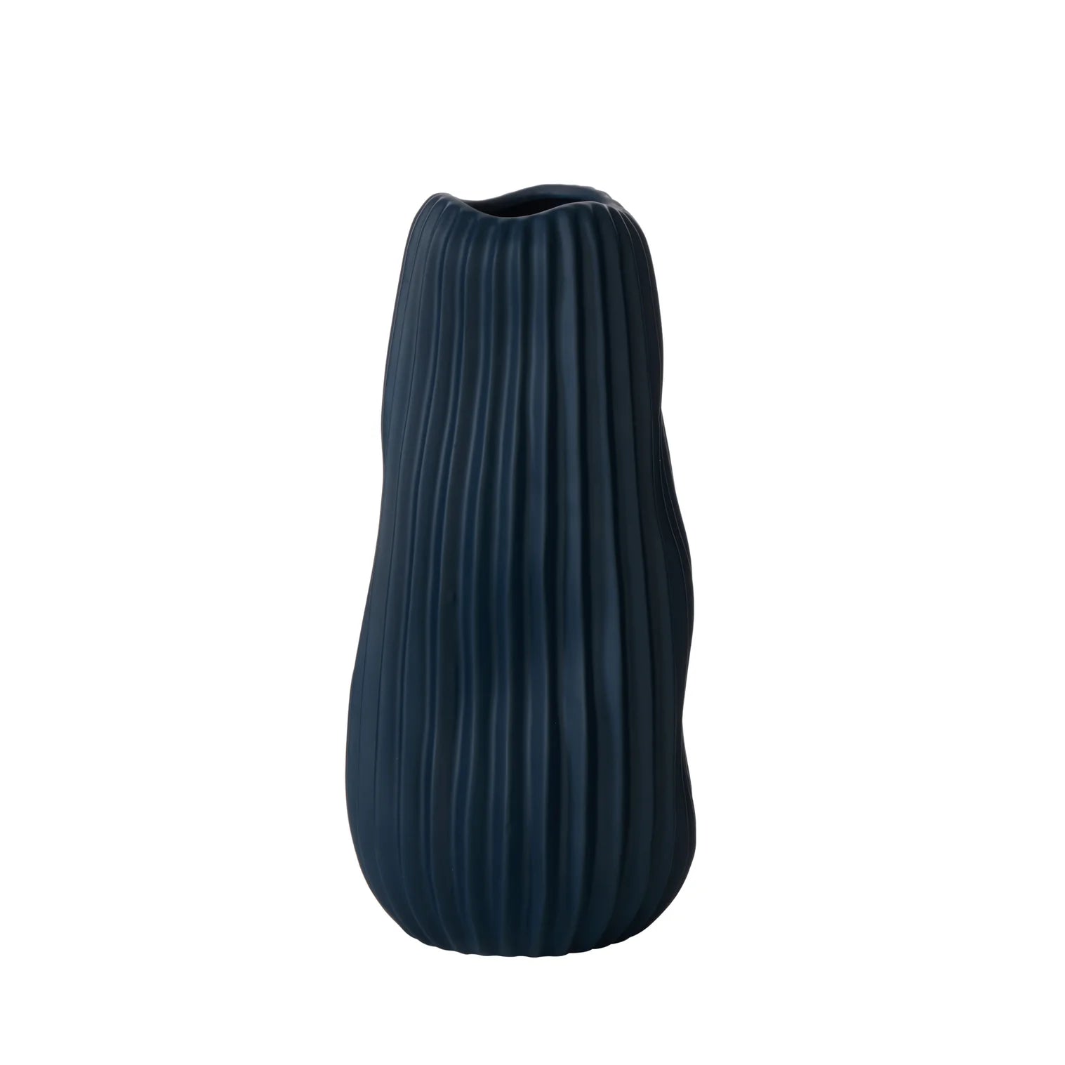 Artful and contemporary, the Lyra Vase by Rogue is crafted with blue ceramic and features an all-over ridged effect, with an abstract shape that adds a little edge to every floral display.
