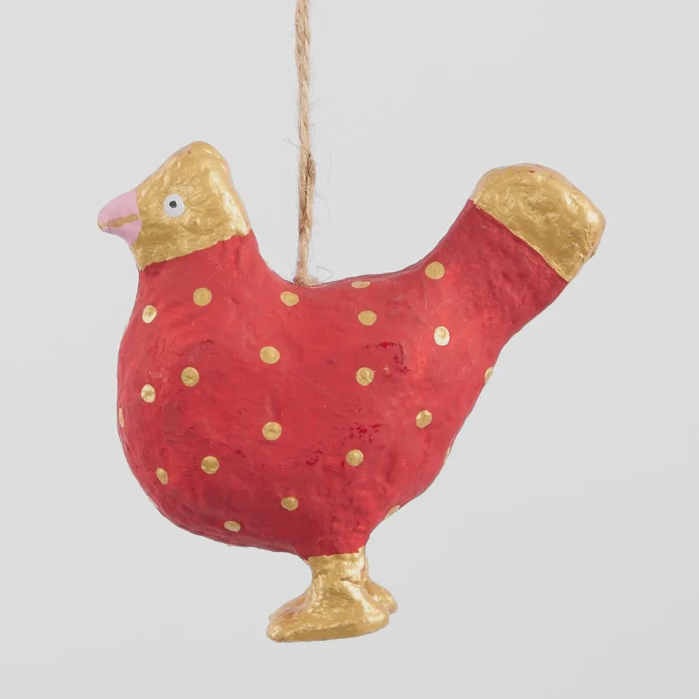 Mache Spotty Chicken Tree Decoration Red
