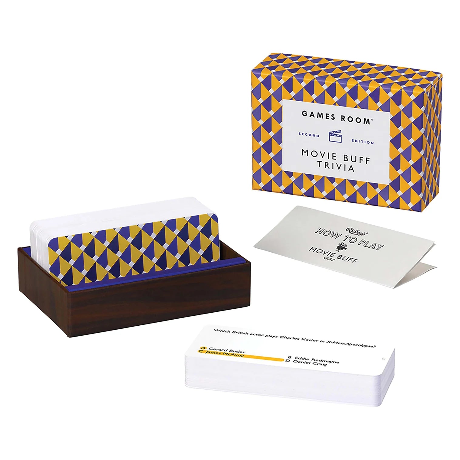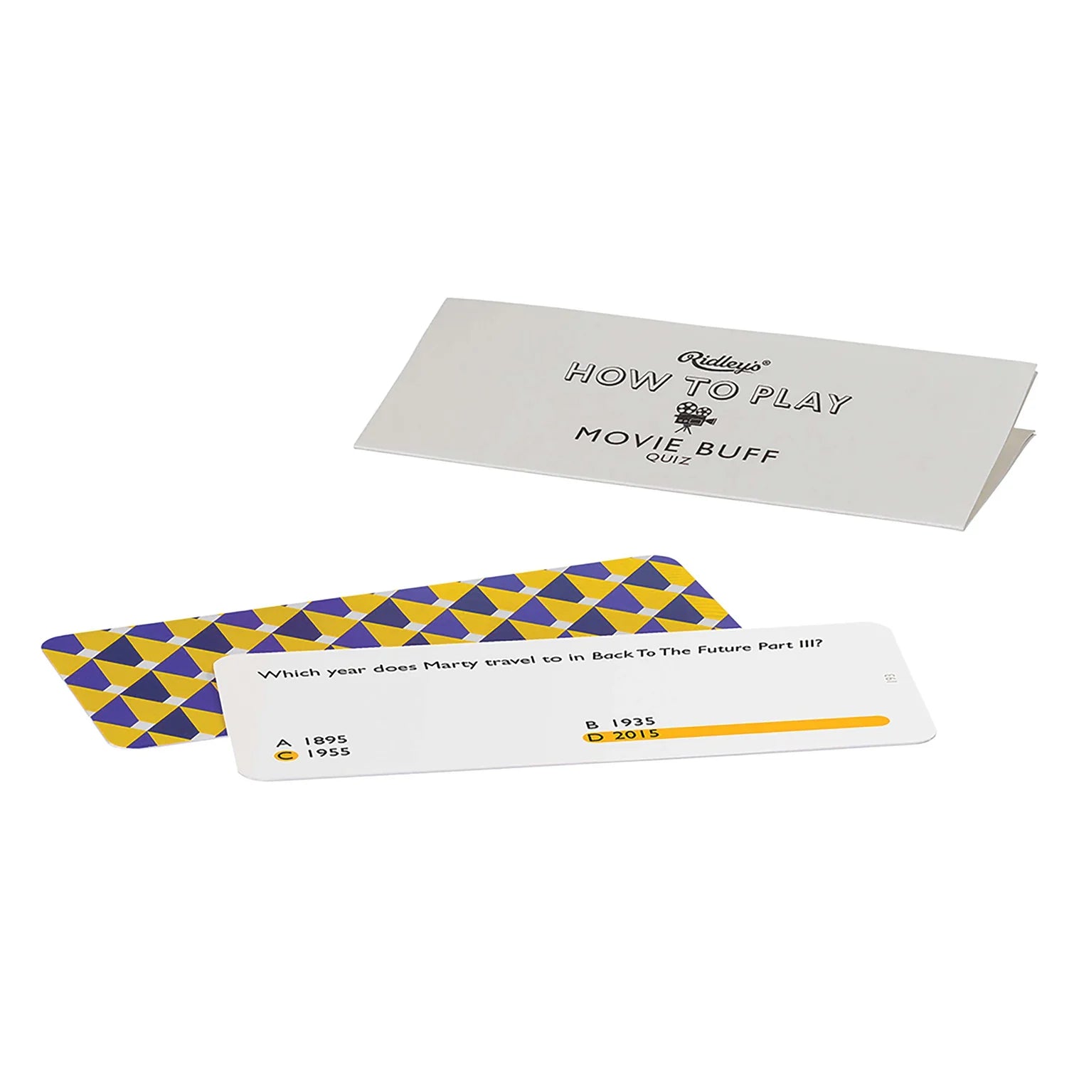 Lights, Camera, Action! Includes 140 multiple choice question cards Features questions about popular, mainstream movies Perfect for social gatherings, parties, and family nights Cards are stored in a durable cardboard box Measures 3.