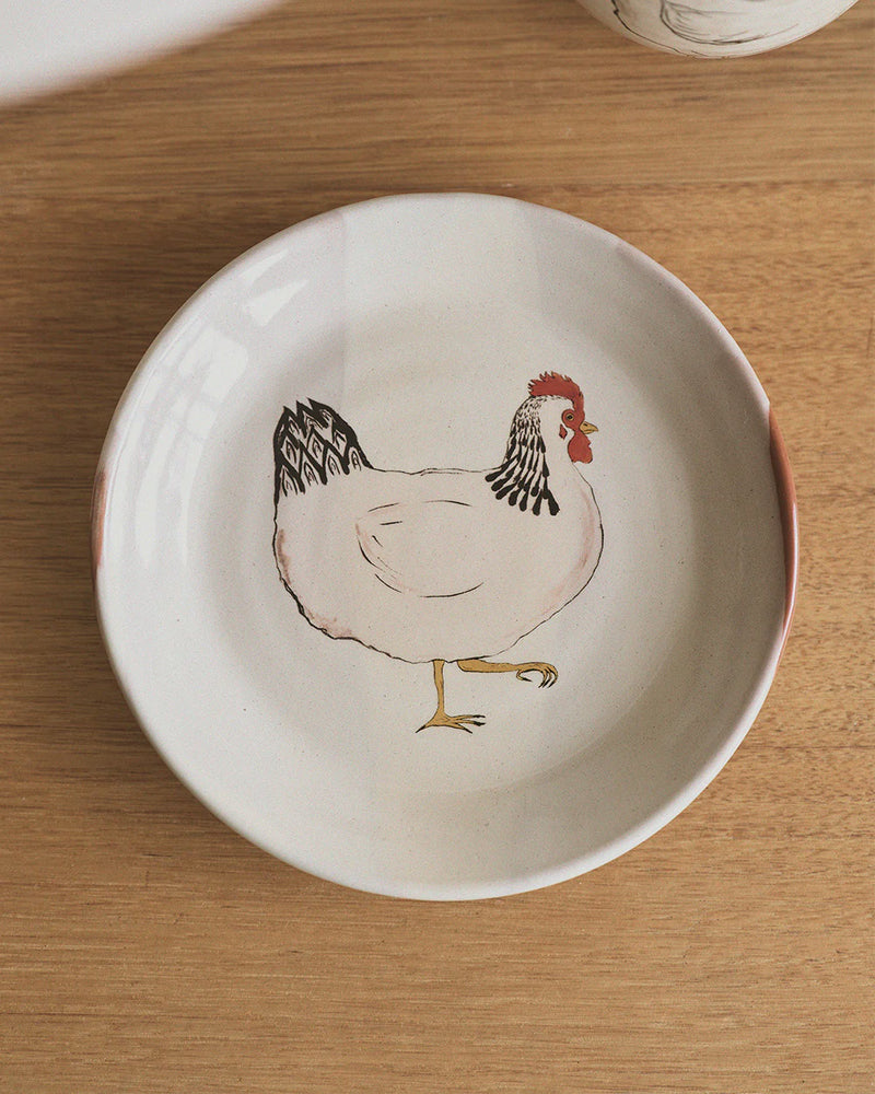 A delightful collaboration with the talented Emogen Clark. Her love of chickens and the joy they bring is something to be shared and celebrated with our pottery.