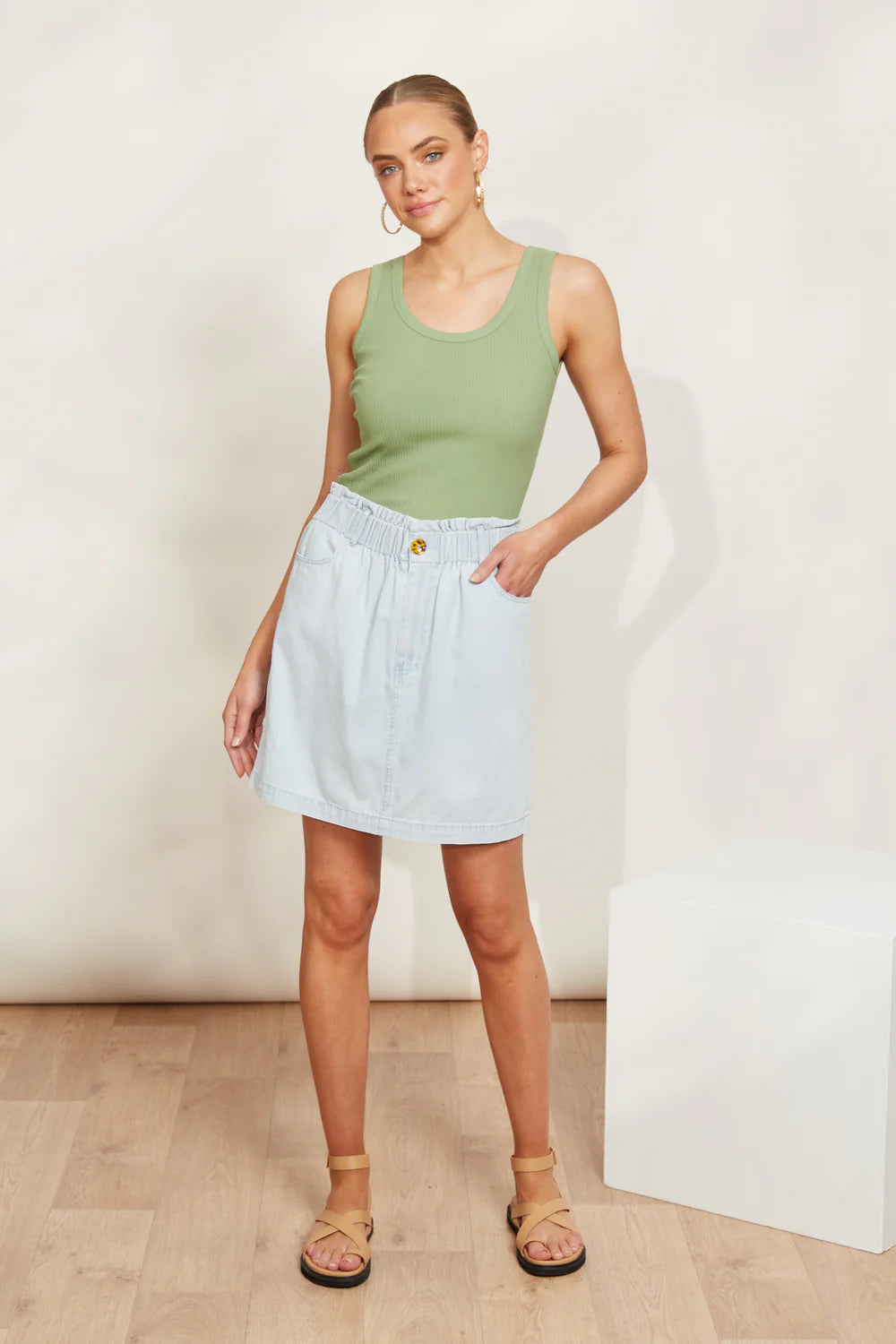 Introduce the Playa Mini Skirt into your summer capsule wardrobe. In lightweight denim cotton, this mini skirt features a relaxed fit that you'll love to wear all season long. With an elastic paper bag waist and convenient button and zip closure, you'll enjoy a comfy fit ideal for everyday wear. Mix and match it with all your favourite summer tops for endless outfit possibilities!