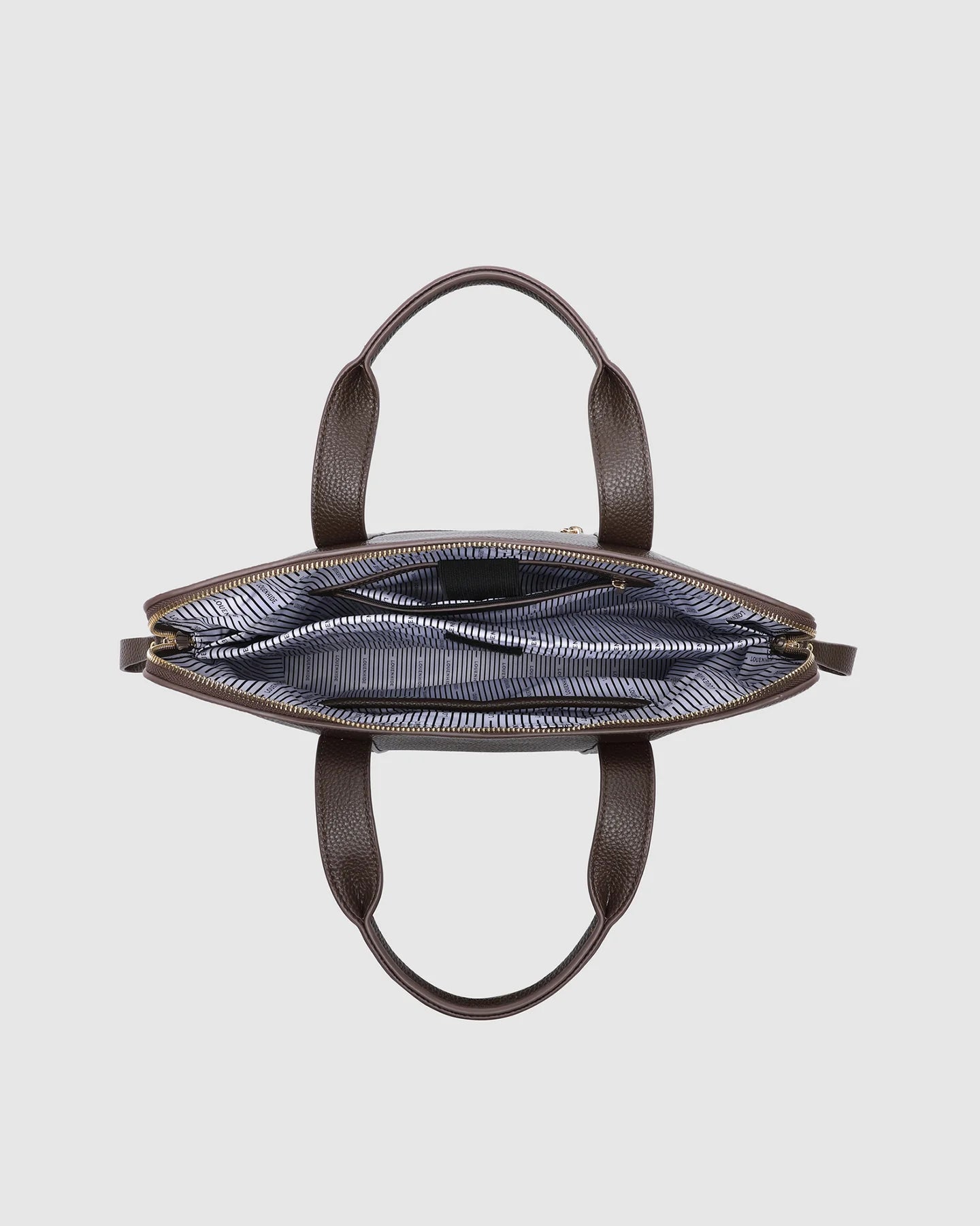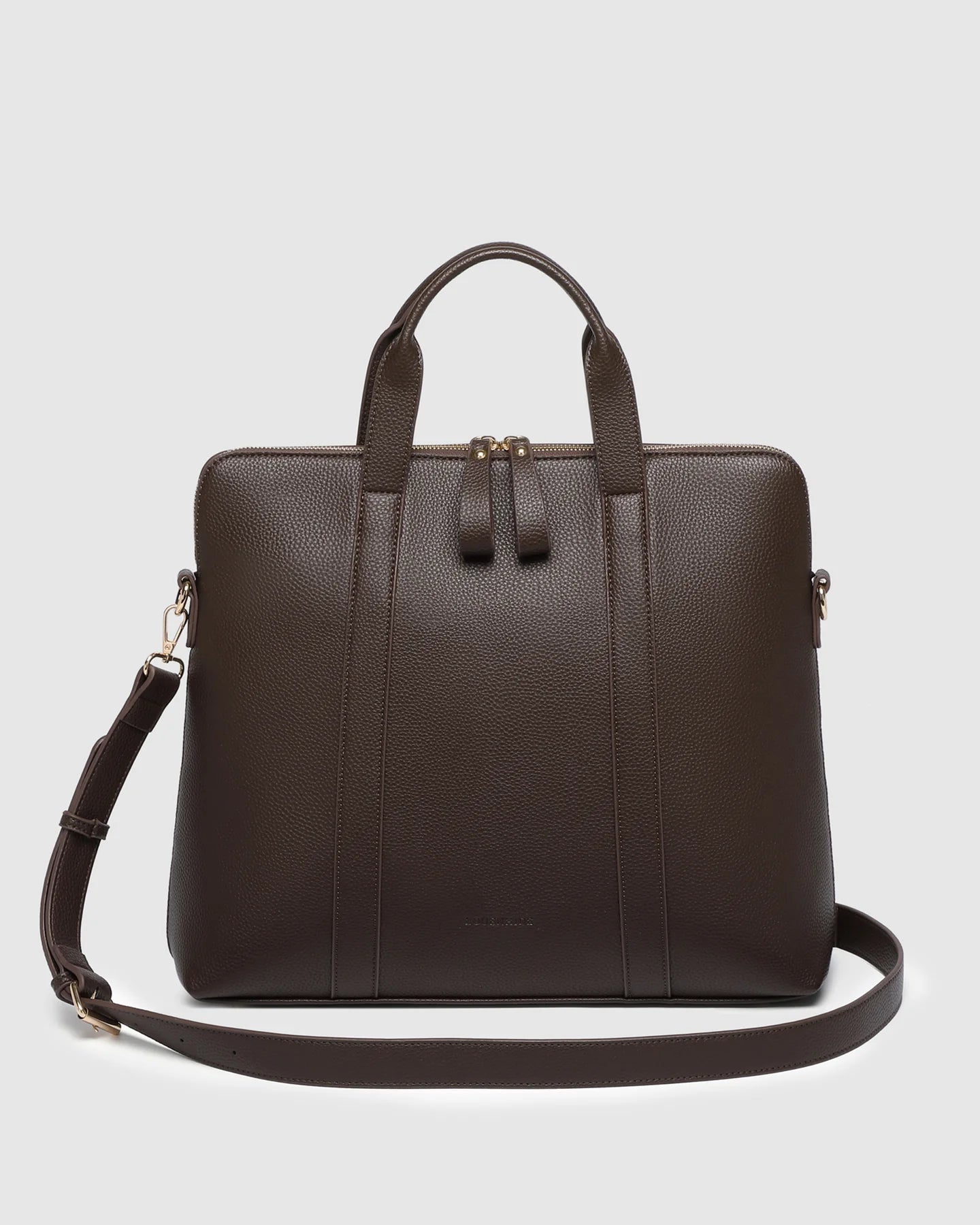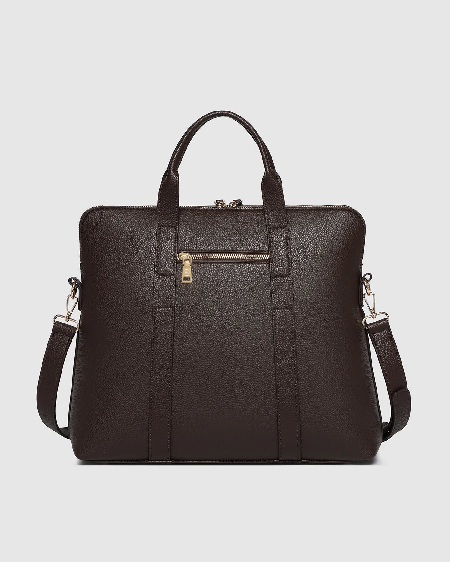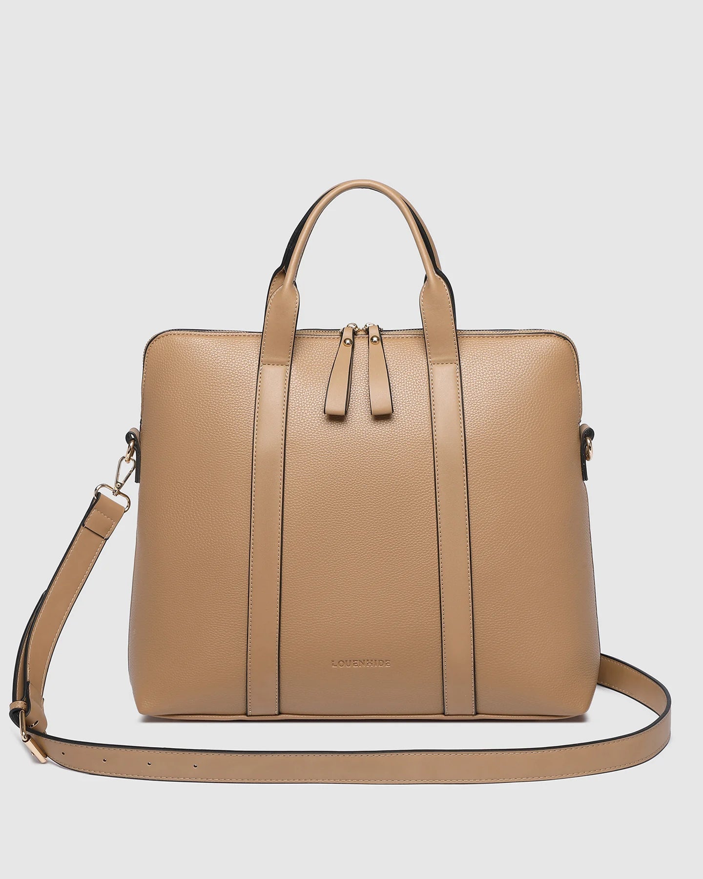 The Rhodes Laptop Bag is a timeless Louenhide classic, loved season after season for her blend of elegance and practicality. Designed in a structured silhouette from buttery soft vegan leather, Rhodes offers generous space for your workday or study essentials, with a padded compartment to securely fit up to a 15-inch laptop. Thoughtful interior sections keep notebooks, pens, and devices organised, while the extra padding provides added protection for your tech. Carry her by the top handles for a polished look, or style crossbody with the adjustable, detachable strap for on-the-go comfort. Understated and versatile, Rhodes is the ideal companion for the modern professional, whether heading to the office, university, or a client meeting.