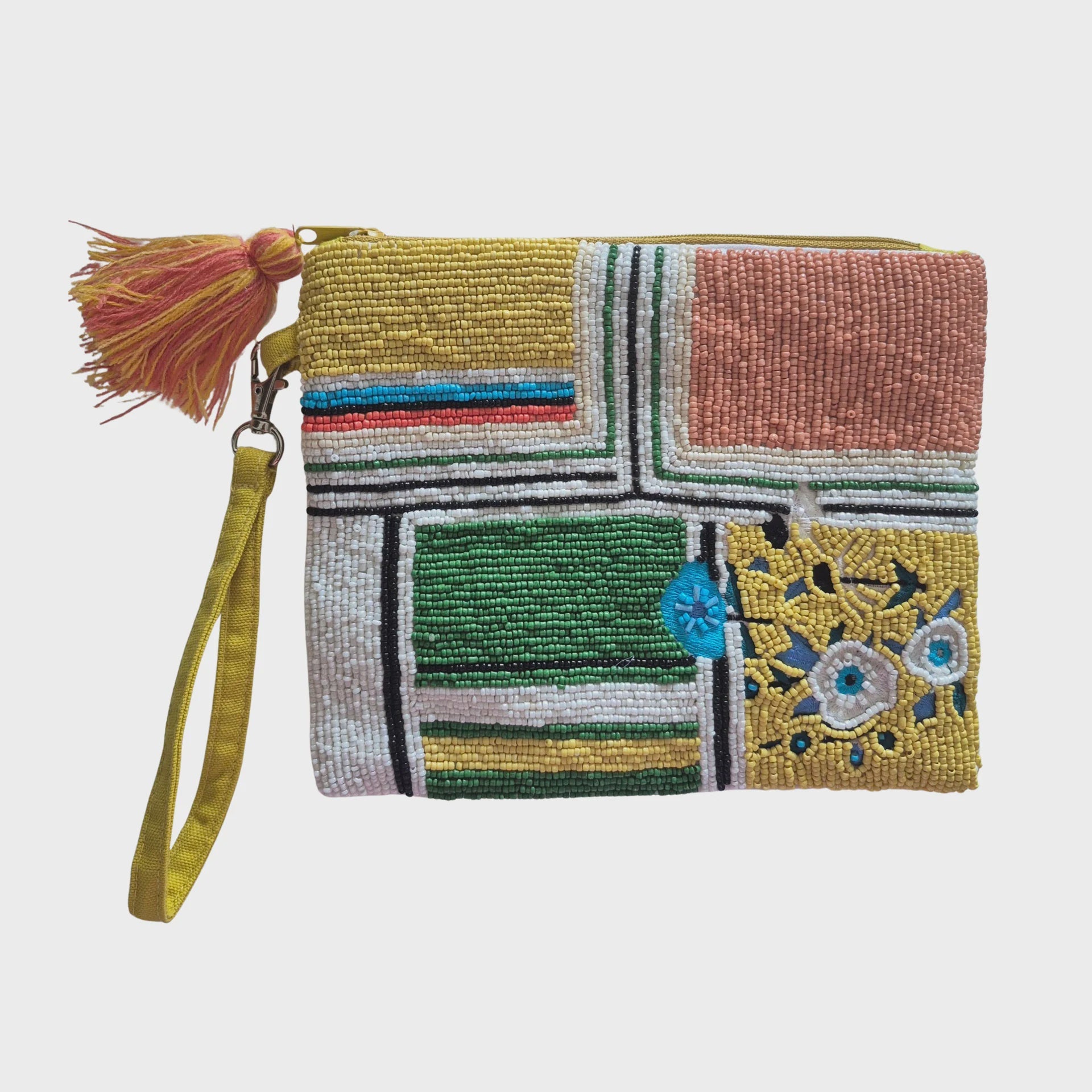 Yellow apricot green beaded clutch